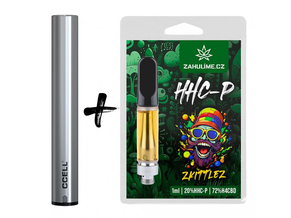 Sada obsahuje novou baterii CCELL M3 Plus a jednu HHC-P cartridge Zkittlez